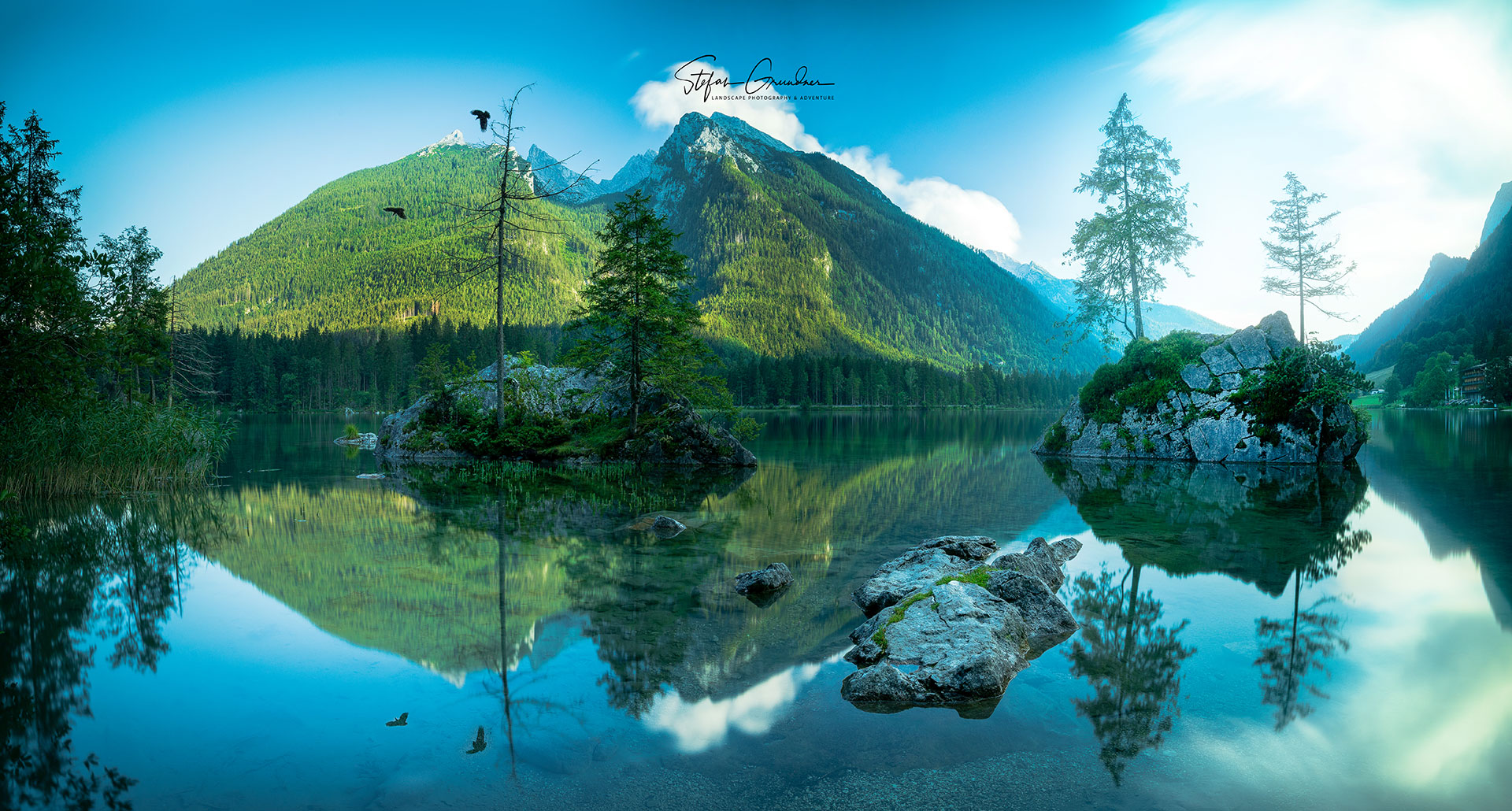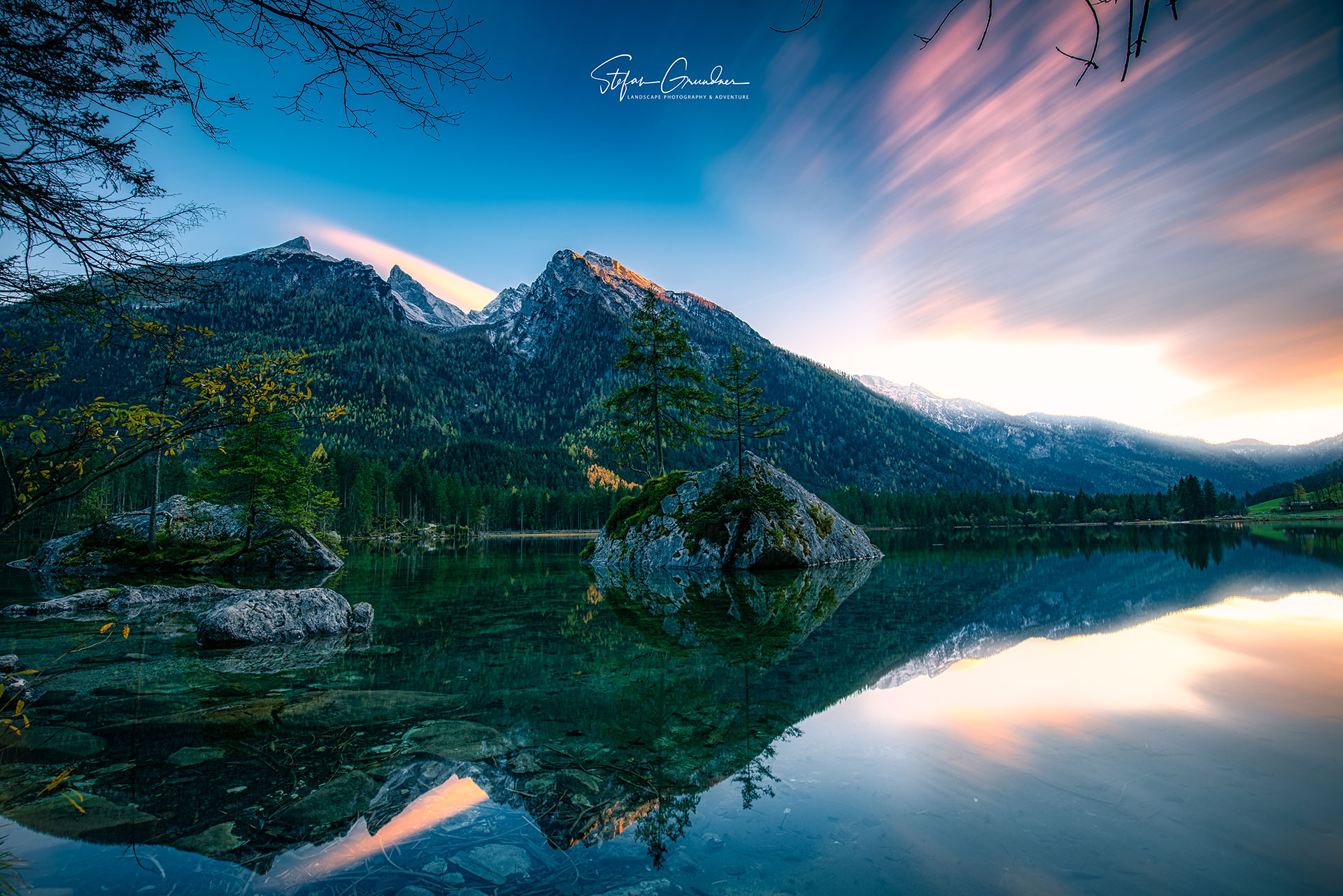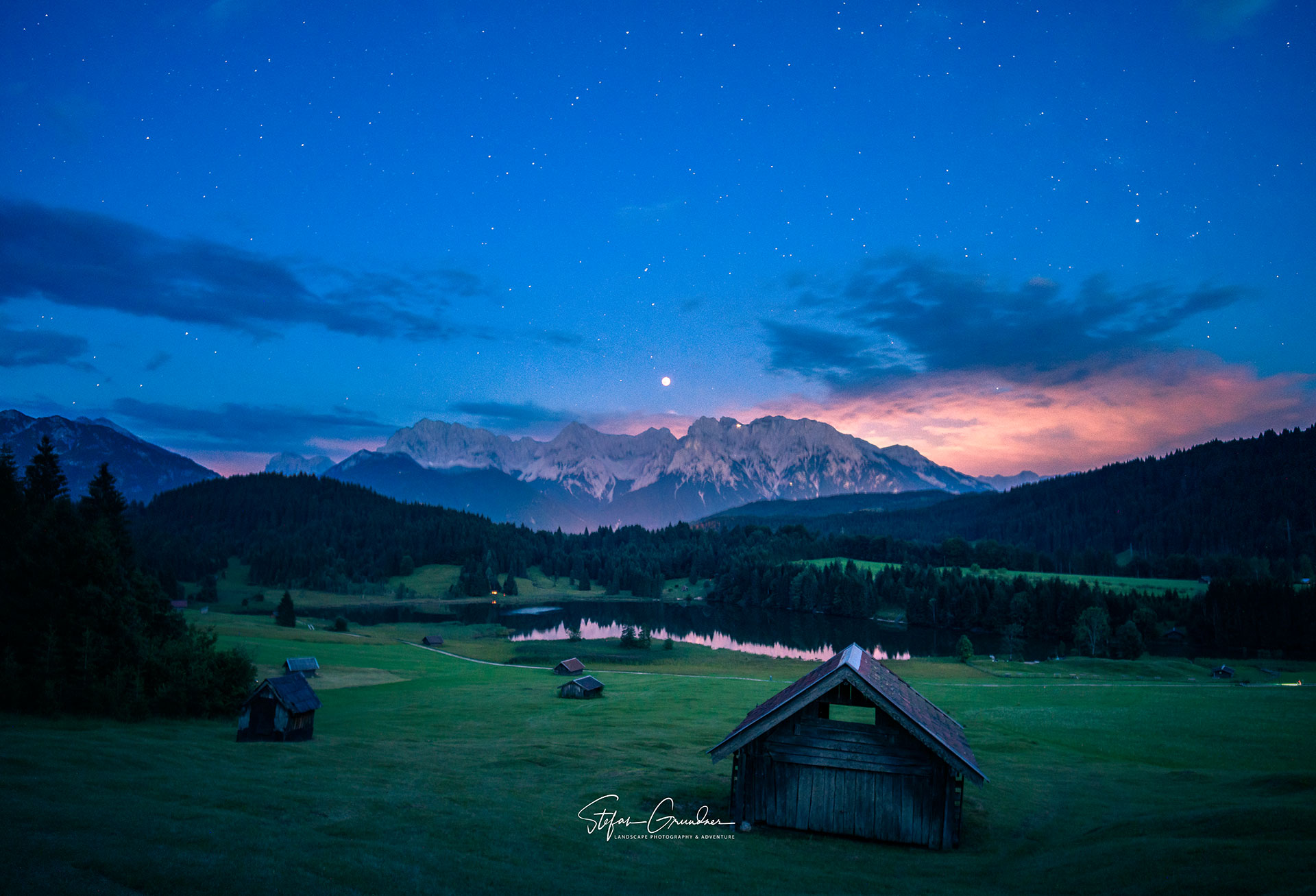 Ein fertiges Foto besteht meistens aus mehreren einzelnen Aufnahmen, die dann in der Bildbearbeitung zusammengefügt werden. Somit kann ich erreichen, das dass Bild von vorne bis hinten knack scharf ist oder noch Sonnenstrahlen in der blauen Stunde im Bild zu haben. Damit das Bild so rauskommt wie ich es mir vorstelle, arbeite ich mit der Blending Methode, um die Landschaft so einzufangen wie ich sie empfinde.